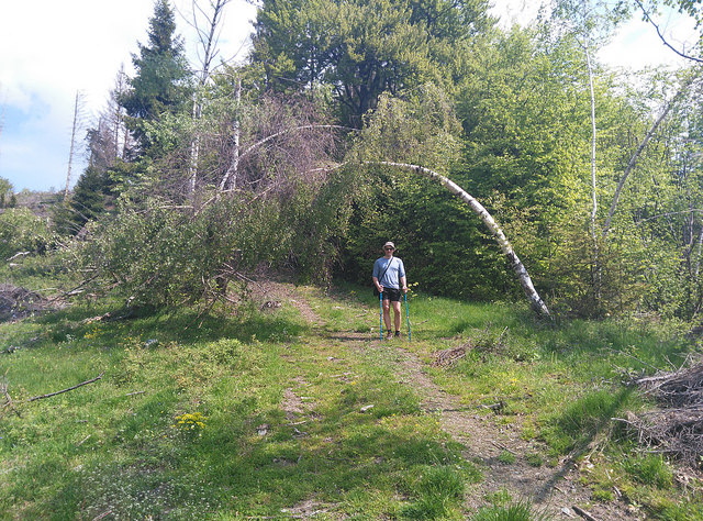 Z kúpeľov cez les priamo hore na posledný výrazný kopec – Stebnícka Magura. Na začiatku strácam nejaký čas, lebo sa musím vrátiť po šatku, ktorú som zabudol pri penzióne. Na Magure čítam vo vrcholovej knihe odkazy SNPčkárov a miesto raňajok pokračujem dole do Zborova, kde si na poludnie kupujem v potravinách obed. Rožky s treskou tlačím do seba v parčíku pri rieke. Potom smerom na osadu a cestou dišputujem so skupinou asi 15tich detvákov, že odkiaľ idem. V osade ma posielajú popri priviazanom psovi priamo hore a tam strácam značku. A keď strácam, tak že poriadne. Naspäť do dediny sa mi nechce, tak nejako improvizujem a deriem sa cez kríky smerom k hradu.